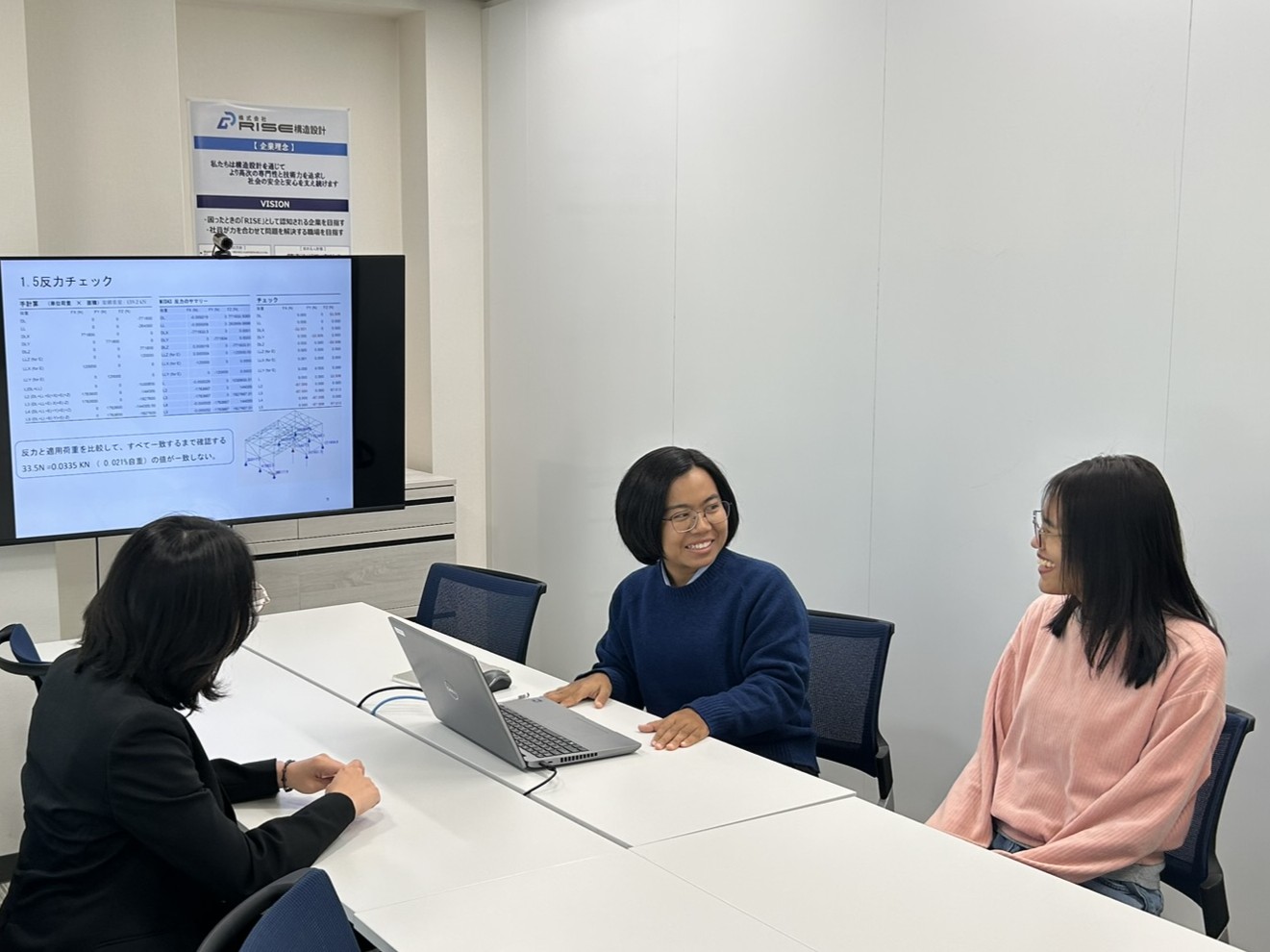 インターン生との耐震技術の共有を通じて、SDGsと国際協働への意識が高まるとともに、次なる国際協働に向けた社内のチーム体制を構築する貴重な機会となりました。さらに、この経験は来年度から運用を予定している[海外人材活用プラン2026]実現に向けた大きな追い風となっております。
